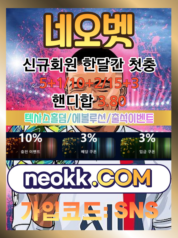 *&% 네오벳 *&% 신규한달간 5+1/10+2/15+3] 핸디합3.80] 텍*사*스홀*덤] 애니플러스키론가상게임]