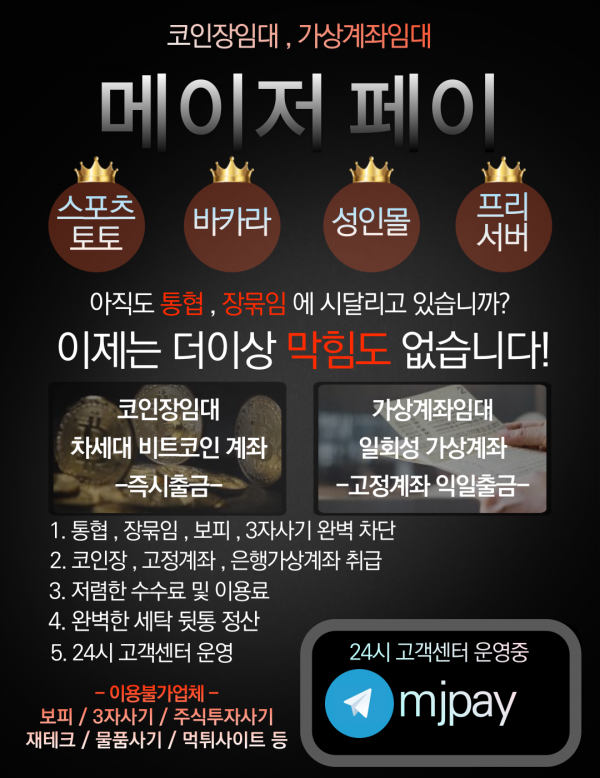 안전 가상계좌임대 업계1위 메이저페이 [ 텔레 mjpay ]